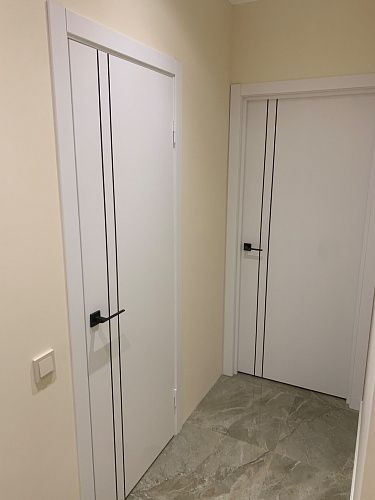 Дверь ПГ Line 2 Белый Emlayer АВС кромка из Экошпона COVERFLEX (Двери Нева) в с установкой и доставкой