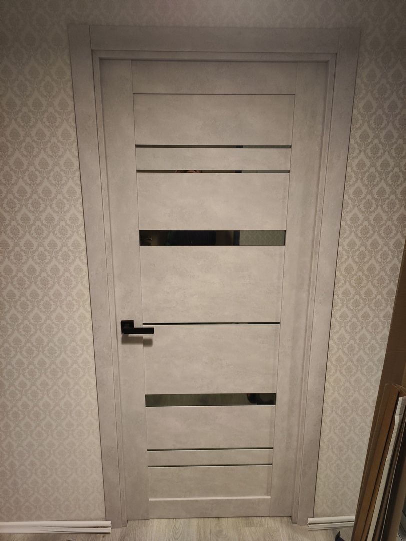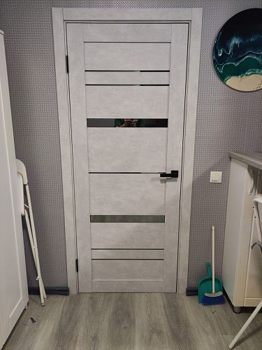 Дверь ПО Cezar 2 Бетон лайт стекло зеркало графит из Экошпона COVERFLEX (Двери Нева) в с установкой и доставкой