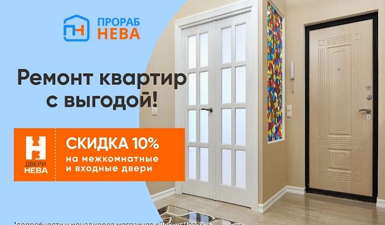 Все заказчики ремонта получают дополнительную скидку 10% в компании «Двери НЕВА»